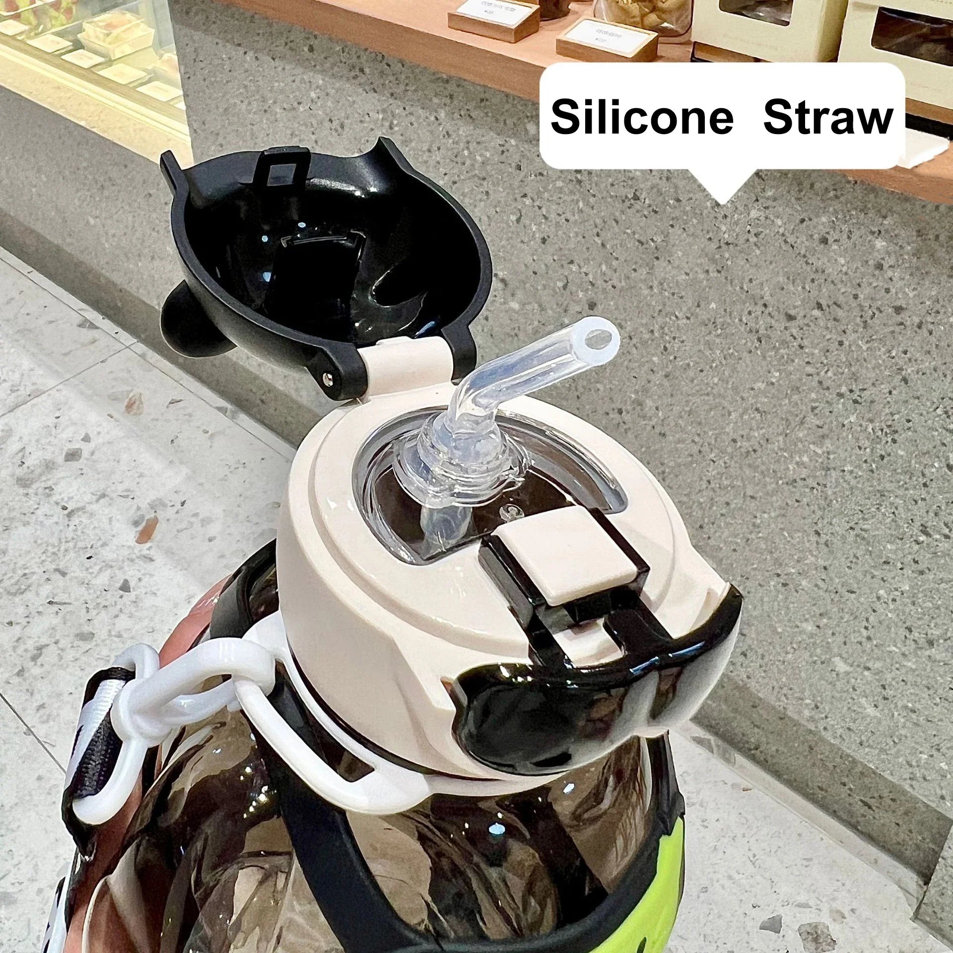Garrafa desportiva com palha, de grande capacidade, copo de água em plástico para viagens, chaleira portátil para mochila, 850 ml.