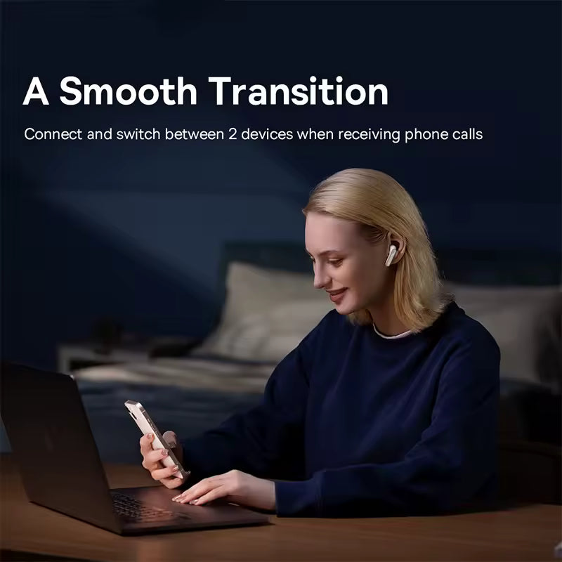 Descobre o equilíbrio perfeito entre elegância, desempenho e conforto com os Baseus Bowie E5 TWS, auscultadores pensados para quem procura uma experiência sonora superior no dia a dia. Equipados com Bluetooth 5.3, garantem uma ligação estável, rápida e eficiente, oferecendo uma reprodução suave e contínua, mesmo em movimento.
