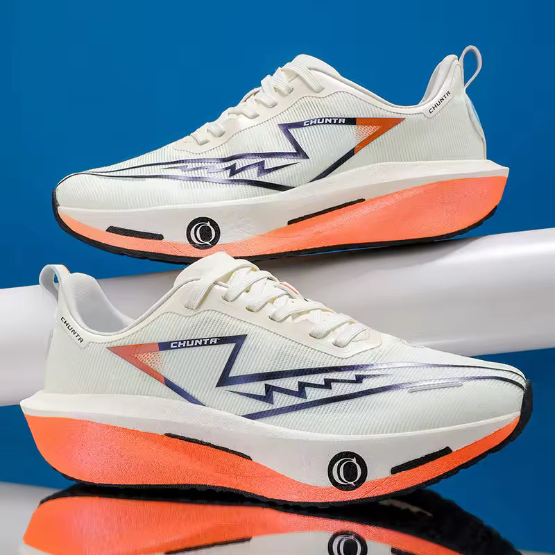 A sola antiderrapante com amortecimento resistente ao desgaste garante segurança, estabilidade e uma passada suave, seja em corridas ligeiras, caminhadas ou atividades do dia a dia. O design com atacadores e biqueira arredondada proporciona um ajuste confortável e natural, adaptando-se ao movimento do pé com fluidez.